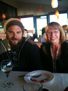 Okay, it wasn't actually Zac Brown. But it definitely was his doppelganger (I had to text my son, Aaron, to make sure of that word...) Seriously. Down to the beard and the brown knitted stocking cap! Zac, I mean Andrew and his really cute girlfriend Ashley, were sitting in the booth behind us. I kept telling Mark that I was sure it was Zac Brown, until finally Mark turned around and said, "My wife thinks you look just like Zac Brown. So do people say that to you a lot?" After a back and forth conversation, we invited them to join us for dessert. Turns out that Andrew is also a musician. And his grandmother is a quilter! We had a great time visiting with a "celebrity."
