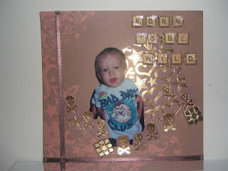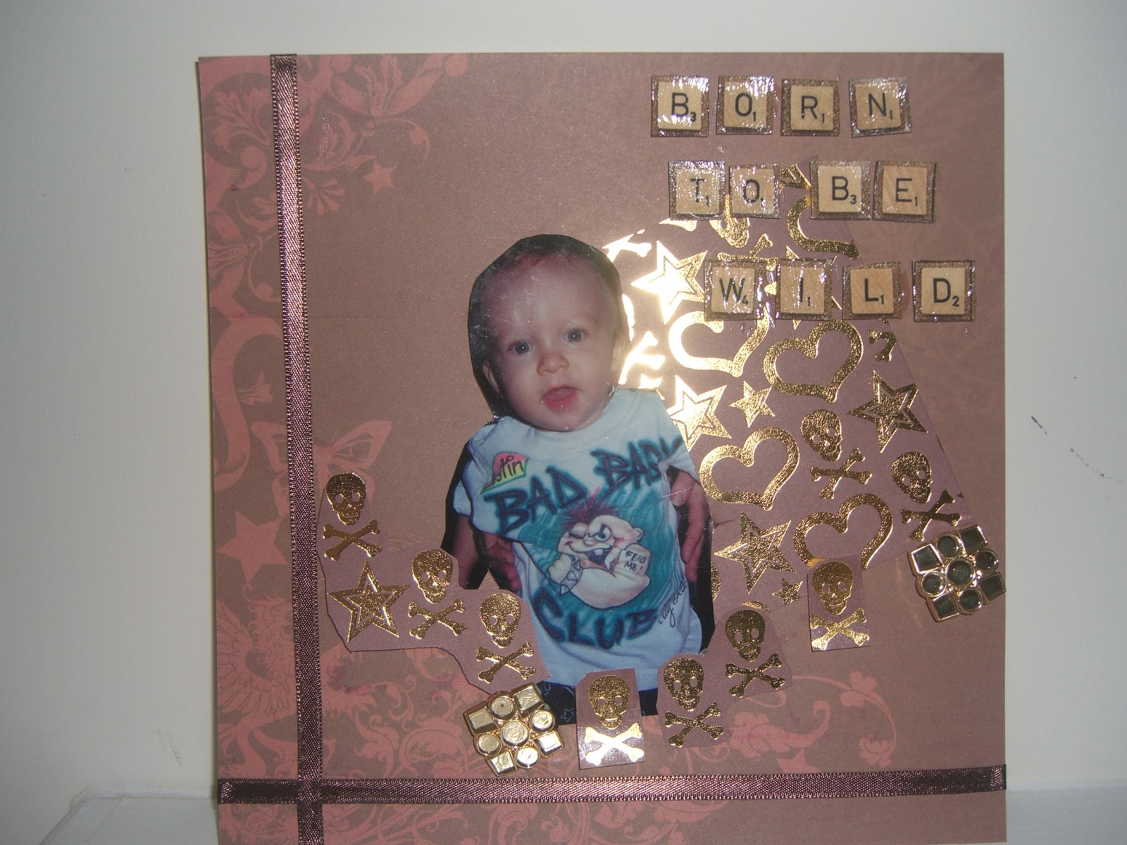 Scrap It with a Song challenge this week is choose your song. They had a lot of great songs to choose from this week. I chose Born to Be Wild by Stepphenwolf because I knew I wanted to use a picture from when my youngest son was little. I made this scrapbook page for the challenge: This is a picture of my son before he could walk I think about 9-10 months old. At birth, he weighed 9 lbs 11 ozs so he was never a little baby. He has red hair and blue eyes like his mom. Here is a close up of the scrapbook letters:
